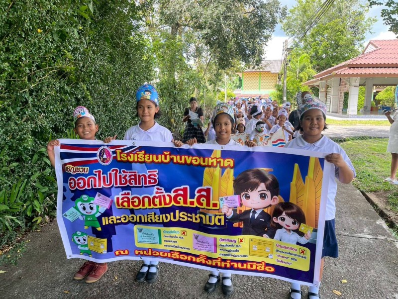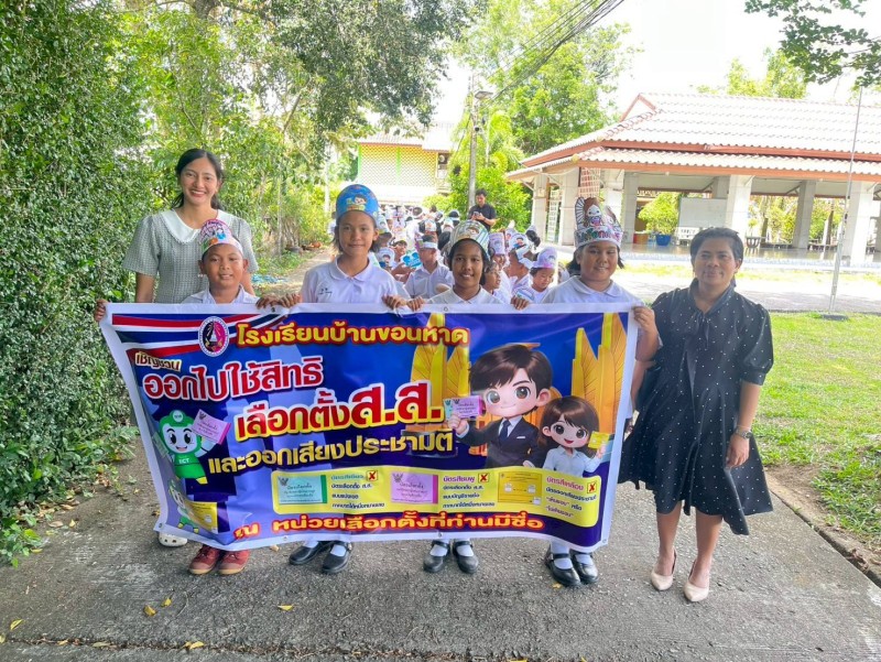 วันศุกร์ที่๖ กุมภาพันธ์ ๒๕๖๙ นายอธิศ ระแบบเลิศ ผู้อำนวยการโรงเรียนบ้านขอนหาด พร้อมด้วยคณะครู บุคลากรทางการศึกษาและนักเรียนโรงเรียนบ้านขอนหาดร่วมจัดกิจกรรมการบูรณาการและเดินรณรงค์เชิญชวนการเลือกตั้ง ในวันอาทิตย์ที่๘ กุมภาพันธ์ ๒๕๖๙ นี้ |